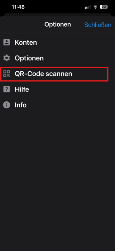 Um die Anmeldung abzuschließen, müssen Sie einen ihren QR-Code scannen.