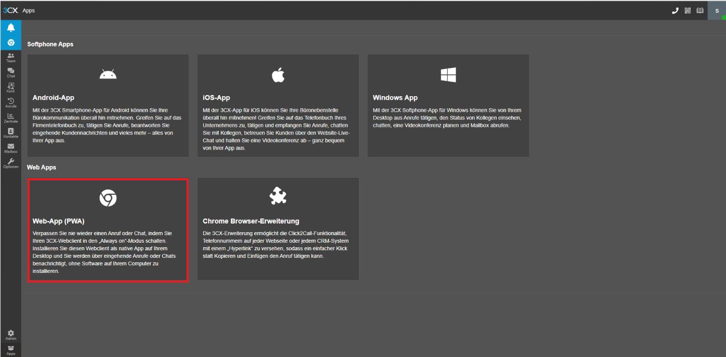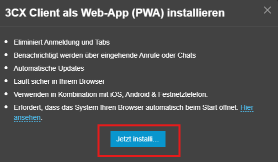 Nachdem Sie alle Schritte durchgeführt haben, haben Sie erfolgreich eine 3CX PWA installiert.