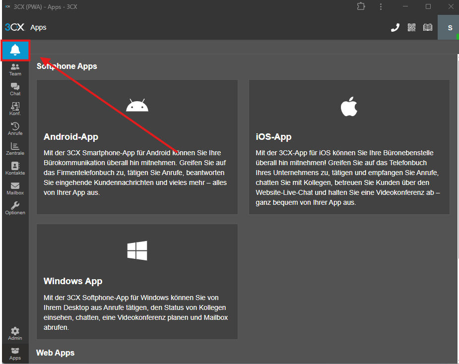 Anschließend wählen Sie bitte den Reiter Apps unten Links aus.