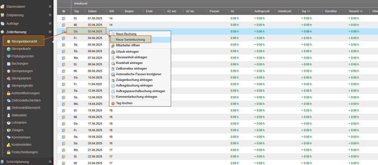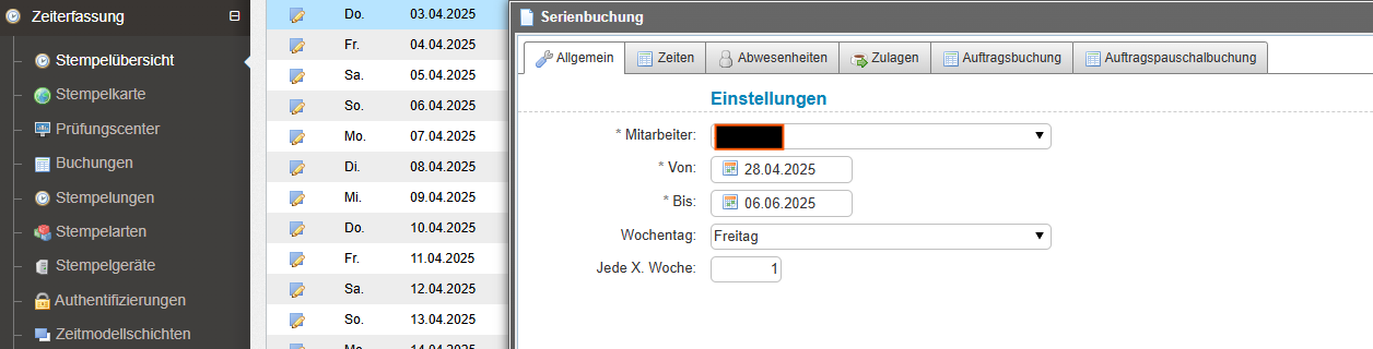 ACHTUNG! Serienbuchungen können nicht mehr Rückgängig gemacht werden.