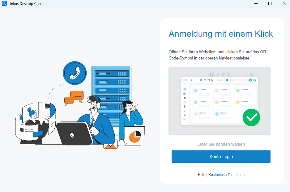 Nachdem der Desktop-Client (PC) erfolgreich installiert ist, sollten Sie die folgende Grafik wiedererkennen.