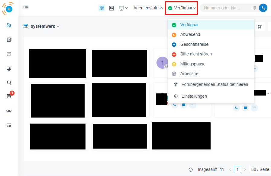 Hier können Sie Ihre Erreichbarkeit einschränken oder freigeben, wenn Sie beispielsweise nicht gestört werden möchten oder außer Haus sind.
