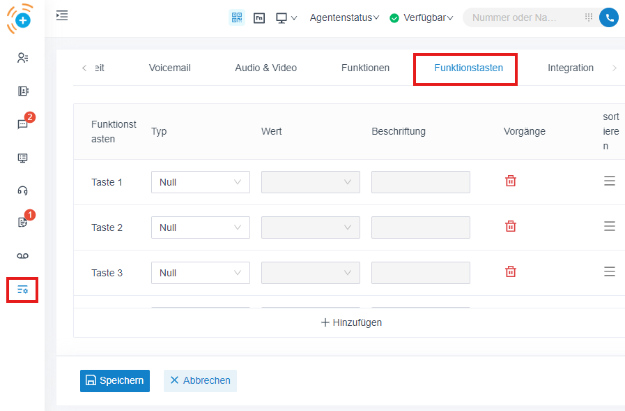 Mit Hilfe der Funktionstasten können bestimmte Nutzer oder Rufnummern als Schnellwahltasten hinzugefügt werden.