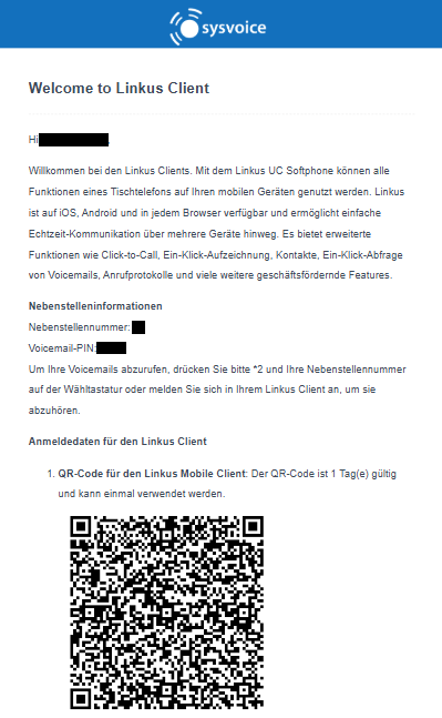 Zu Beginn erhalten Sie eine Willkommens-E-Mail von administration@sysvoice.de.