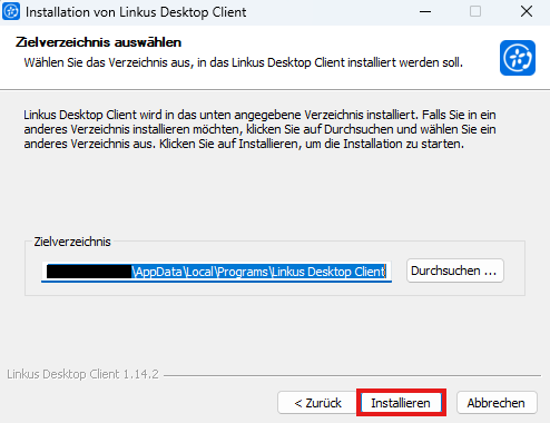 Hier haben Sie die Möglichkeit, den Linkus Desktop-Client (PC) zu installieren (siehe Punkt zwei).